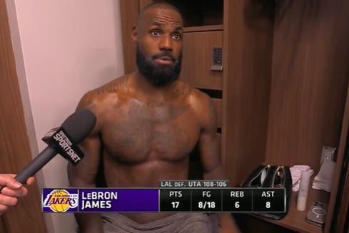 北京时间11月24日,在NBA常规赛中,湖人队在客场以108-106击败了爵士队。赛后,完成本赛季第二场比赛的勒布朗-詹姆斯接受了媒体采访。